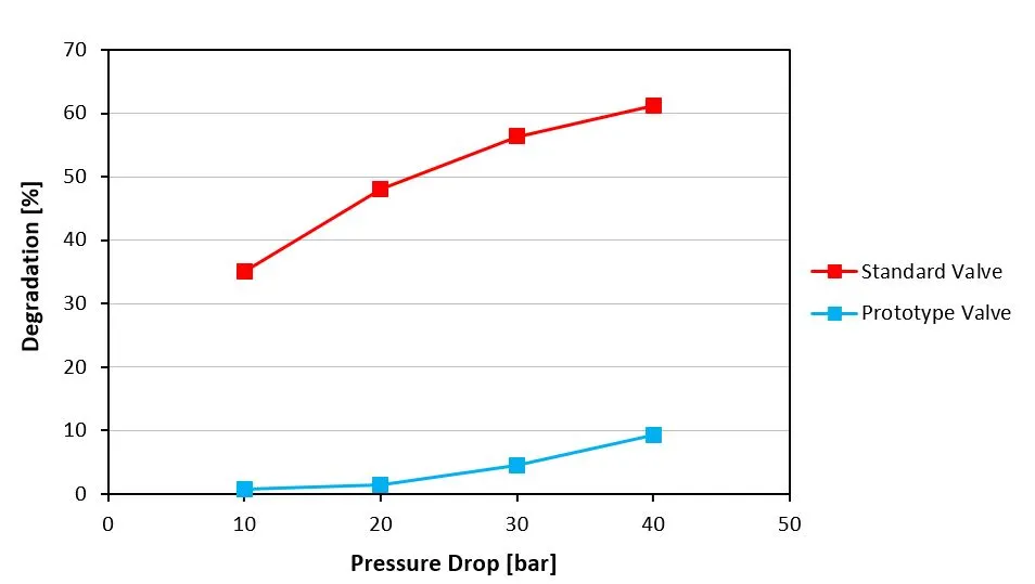 The low shear performance of the mother solution valve was demonstrated in a pilot test in 2020Â [2]. The valve was installed on an existing high concentration mother solution flow line in a polymer field in Europa. Results from the pilot test verified the low shear performance of the valve, with only 2.7% viscosity loss up to 20 bar.
