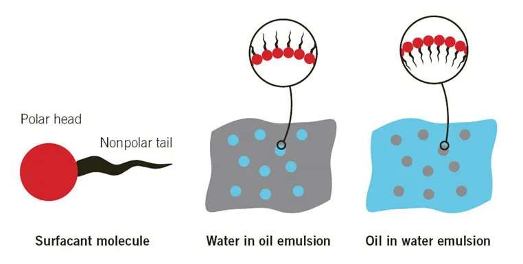 Figure 1: Surfactants arrangement in different types of emulsions.