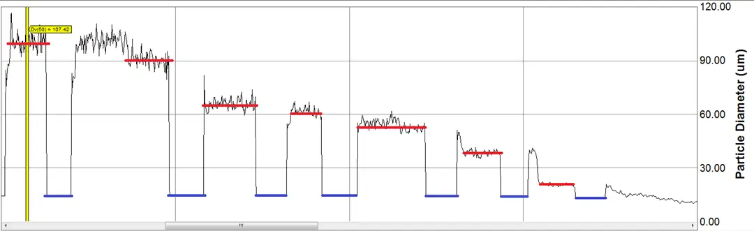 Figure 1: Online measurements of Dv50 upstream and downstream a valve. (Click to enlarge figure)